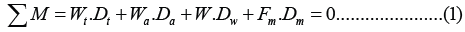Where Dt, Da, Dw, Dm are the distance from the torso, arms, center of the object and the psoas muscles to L4, respectively. The force acting at L4 as in Figure 2 will be the summation of Fm and all the weights in the direction.