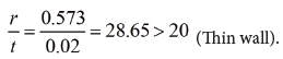 Actually, there is a thin wall constraint for hoop stress. Using the data above, we can easily get the inner radius of the ring. Plugging in the data, we have:
